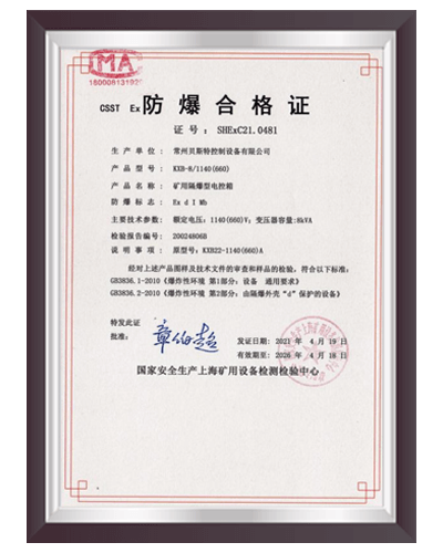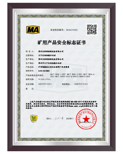 于2000年通過 ISO9001:2000質量體系認證,建立了完善的產品質量控制體系;2006 年6月取得全國工業(yè)產品生產許可證;2008年9月取得礦用產品安全標志證書;2012年取得8項礦用產品的專利證書。